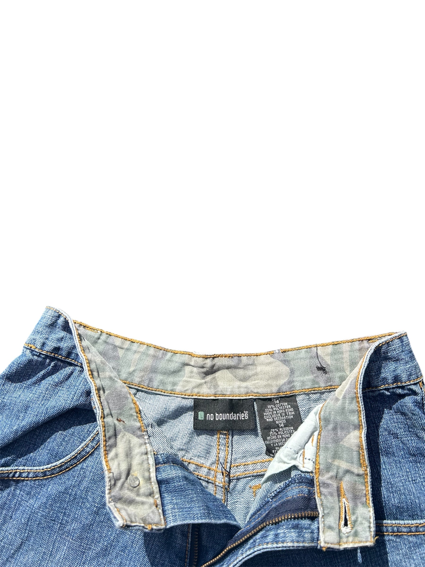 No boundaries Japanese Denim Jorts, Embroidered Design